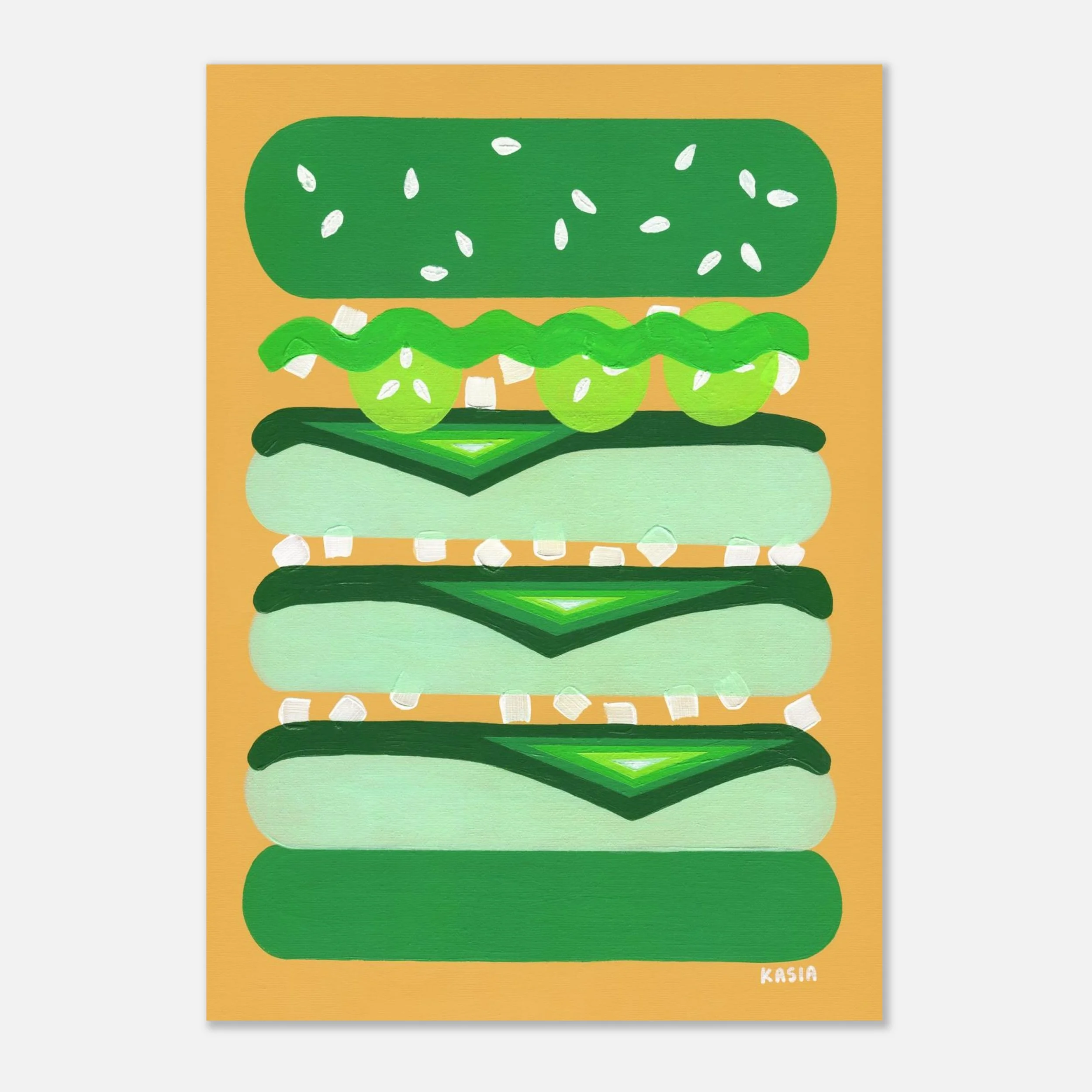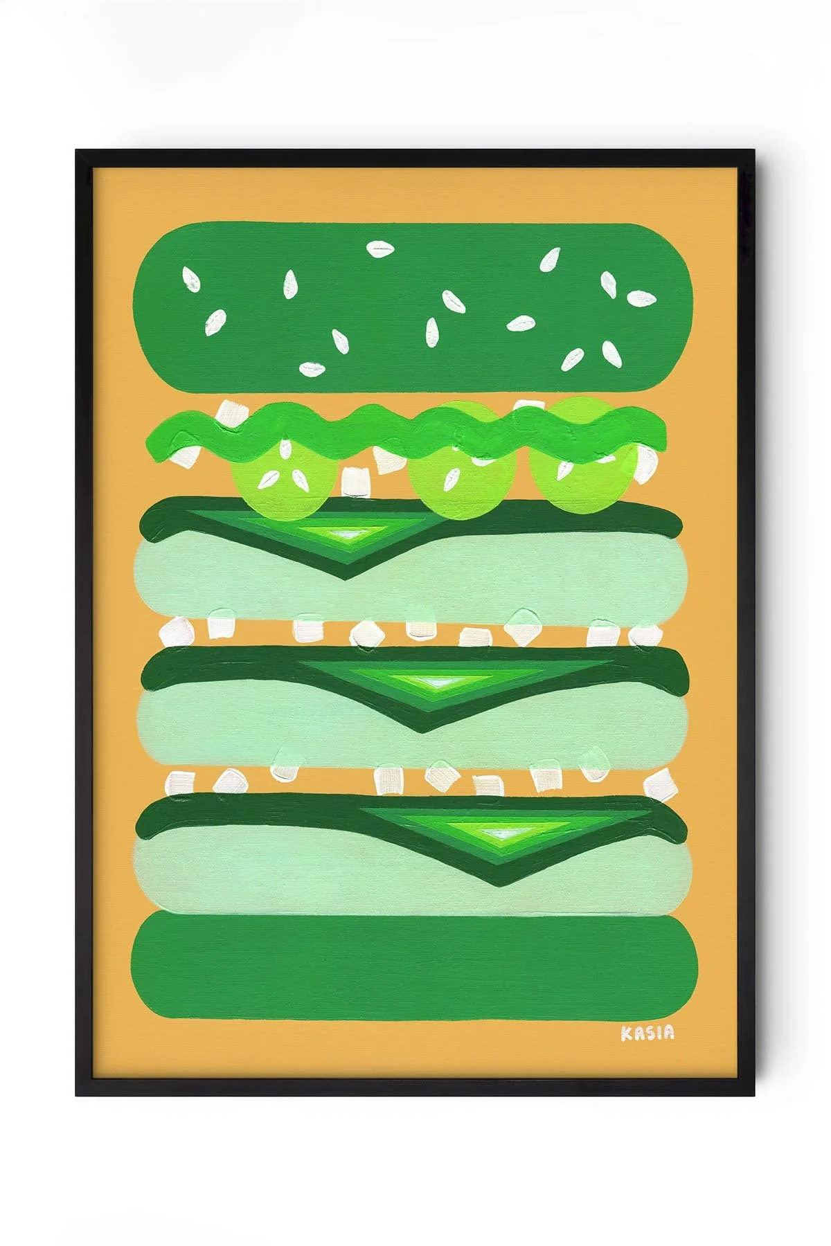 This print is a replica of an original painting called Burger for Kermit by Kasia Sykus.